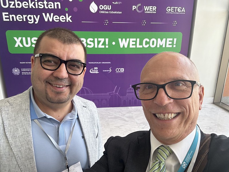 My friend Iso and I attended the Uzbekistan Oil & Gas Exhibition last week. It was my first time in the Central Asia Expo Hall. It is a huge space and the new convention center is located on the highway to Chirchiq. I often bike by it and it was nice to finally go inside. We were trying to drum up business for the school. I noted that 2/3 of the companies were Chinese, both solar and petroleum. The booths are a step up from the education booths that we have at recruiting fairs. I guess that is another difference between business and non-profits.