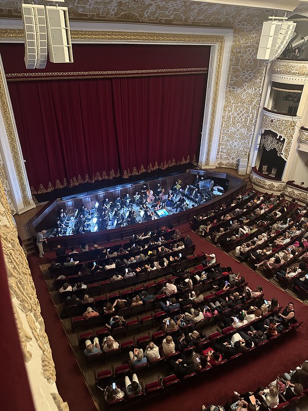 Not only is it the performance itself, but the beautiful, historic theatre is a delight to spend time in. I watched the first two acts from row 9 on the ground floor and then watched the third act on the third-floor balcony. It allowed me to watch the orchestra closely, and it is fascinating to see the different sections of the orchestra come into and out of the performance, matching the singers and the story. The French horns blast to signal action and tension, the four cellos play when Tosca is sad, etc. I realized it is an essential and strong partnership between the orchestra and the singers.
