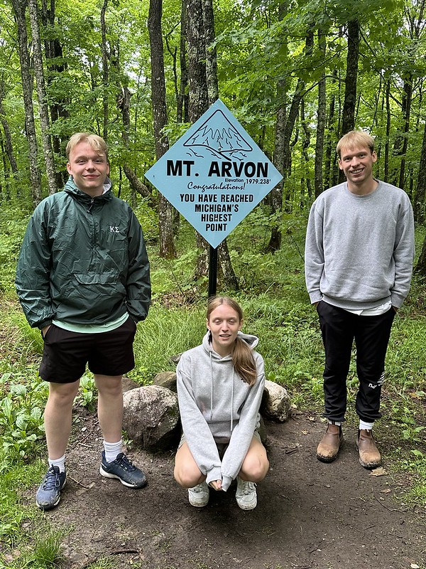 It was a momentous day for the Kralovec family yesterday as we “scaled” Mount Arvon (1,979 feet or 603 meters) and reached the state of Michigan’s highest point. “Mount” Arvon is located in neighboring Baraga County in the Huron Mountain Range. The name comes from the township it is located. Early settlers named the area after the Arvon region in Wales. It was recognized as Michigan’s highest point in 1982. It is located in a remote part of the western Upper Peninsula, 27 miles southeast of the town of L’anse, on Lake Superior.