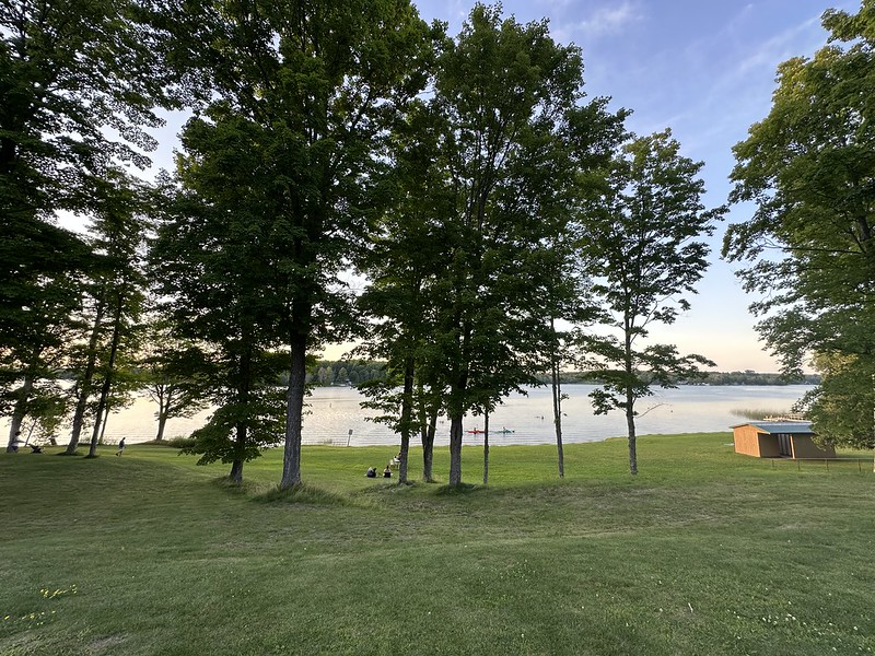 It is awesome to think that all this time later, residents of Iron County can cool off on a rare hot and humid day in the Upper Peninsula, thanks to geological processes that took place so long ago. The lake is located in Bates Township, and officials have maintained a nice public beach area, campgrounds, and a boat landing. There were only a few people there. Oliver, Ocean, and I swam to the dock and had fun pushing each other off and diving off the dock. I noticed a lot of freshwater clams embedded in the bottom of the lake. This is a sign of a healthy lake where filter feeders can thrive.