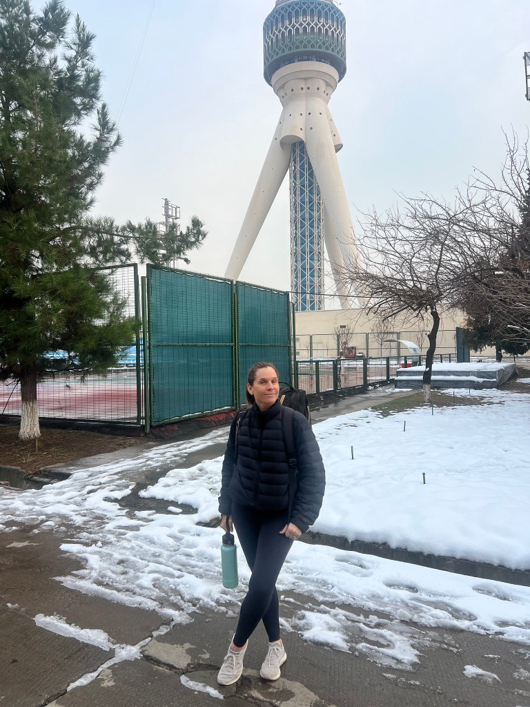 Nadia and I played tennis at the Yunusobod Sports Complex. It was the first time I played in many months due to a sore elbow and shoulder. My shoulder loosened up over the course of the game, but I still felt a little bit of tenderness in my elbow. I defeated Nadia 6-2, 1-2 before our hour expired. Complex officials arranged three tennis courts in the indoor volleyball stadium. The surface was a little slippery, but it felt great to be back playing tennis! Nadia and I had some spirited points and it is something that we enjoy doing together. Followers of my blog know we love and follow tennis. We are all looking forward to the 2026 ATP/WTA seasons. I had a great post-match interview, which Nadia missed. 😦 Nadia and I then went grocery shopping and a bit more of Christmas shopping. I picked up a nice bracelet for Ocean.