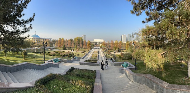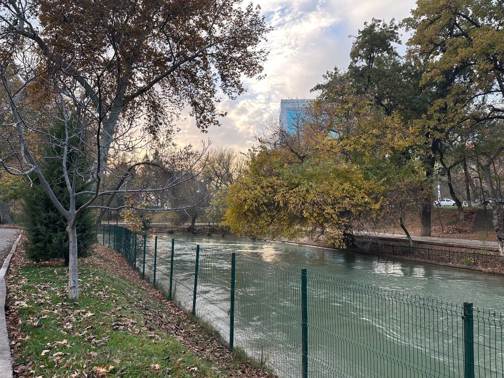 I went for a bike ride on Saturday for the first time in a long while. I also ran at the Milly Bog Park. I am trying to exercise more. Between being busy at school, early sunset, poor air quality, and cold temperatures, I am working out less than this summer. The days are sunny and warm and it was refreshing to be exerting myself outdoors. Since this is my last year in Tashkent, I am photographing and documenting the sites of the city. Below is an autumn photo of the bike trail along the canal and the Transportation University near our house.
