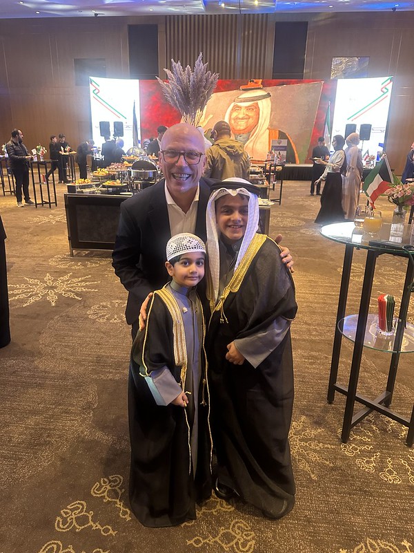 Nadia and I attended a reception hosted by the Kuwait Embassy on Thursday evening at the Hyatt Regency Ballroom. We have several Kuwaiti families at the school, and it was nice to connect with them on their special day. Kuwait marks February 25 as the National Day. It marks their independence from British Protectorate Status in 1961 and the accession of the Amir (Ruler) in 1978. It has become the primary holiday to celebrate Kuwaiti sovereignty and identity. I always invite my friend and TIS teacher Ahmad, to any Arabic language event, as he is a native Arabic speaker and is a good representative of the school. Nadia usually doesn’t attend these events with me, but came because one of her students really wanted her to come to the party. It was a special evening for us.