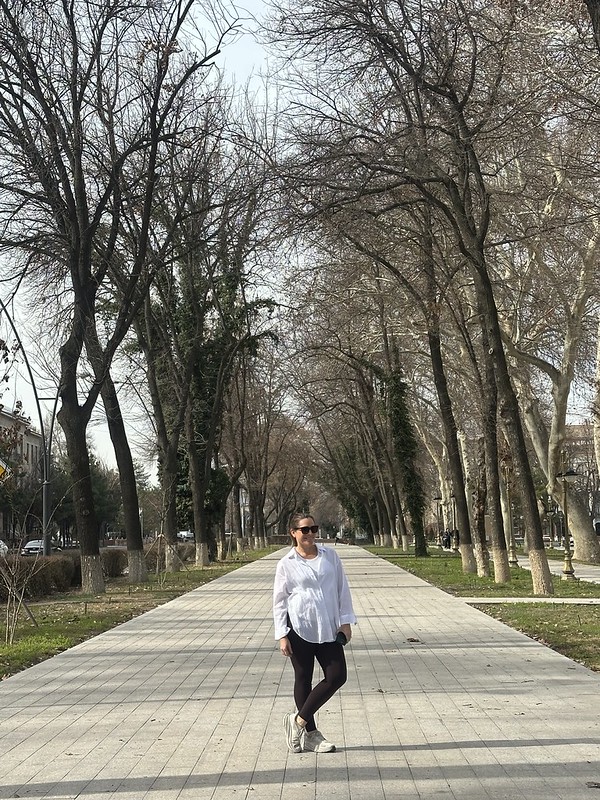 February is usually the most dreary month of the year. The holidays have passed, the grey skies, cold temperatures, and snow/rain mix make for weeks you just want to get through until spring arrives. February 2026 in Tashkent has been unusually war,m with the average high temperatures historically (8C-46F) being the low temperatures, and the thermometer reaching into the high 60s and low 70s this week. Yesterday afternoon, it reached 72F(23C), and students were wearing shorts and t-shirts. Nadia and I took advantage of the warm temperatures and went for a walk downtown. We are getting used to soon becoming empty nesters and the next phase of our lives. I love the beautiful architecture of the city and the beauty of Nadia. The neighborhood around the Opera Theatre is my favorite place in Tashkent.