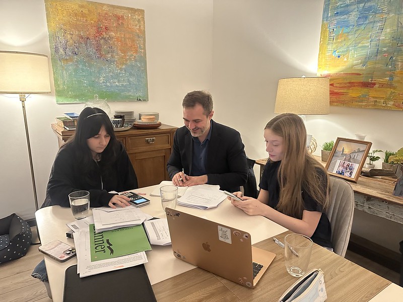 Ocean is in the final stretch of her senior year, and she looked so cute studying mathematics, I had to take a photo. Alexi tutored Oliver to get a 5 in his mathematics exam, and hopefully, we will get similar results for Ocean. Ocean invited her friend Hadicha this evening. Ocean recently completed her “mock” exams and is now preparing for the final exams in May. Her last day of regular classes will be April 15. The countdown to graduation is on…