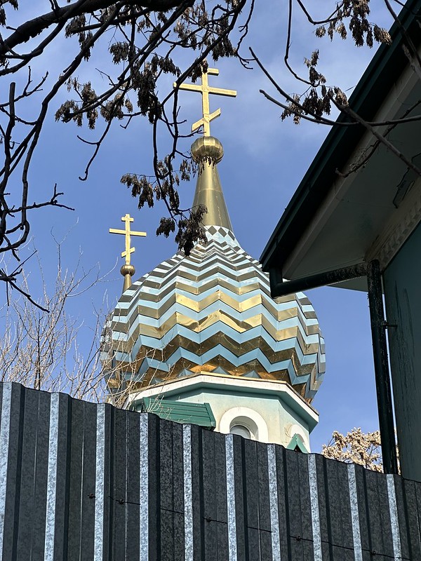 I continue to savor the sights of the city of Tashkent. On my Saturday morning run with Obi near the Russian Orthodox Diocese (territorial jurisdiction) Headquarters in Tashkent. In Orthodox Christianity, a synod, a formal council of clergy (a new word for me), runs the various dioceses. The Patriarch reorganized the Orthodox Churches in 2011 for all of the Central Asian former Soviet Republics to be one diocese. The building used to be the residence of the ruling bishops of the Tashkent Diocese back when there were many more ethnic Russians here. I read it also used to be a hospital and I saw a group of nurses cleaning the pathways around the property while I was running by so there probably is a Russian hospital on the property. Byzantine Orthodox mosaics are beautiful, and the onion domes are distinctive. I am heartened by the Orthodox Christian Church to still be present in the ever-increasing Muslim majority post-independence Uzbekistan. As an American, I value religious freedom and a secular government.