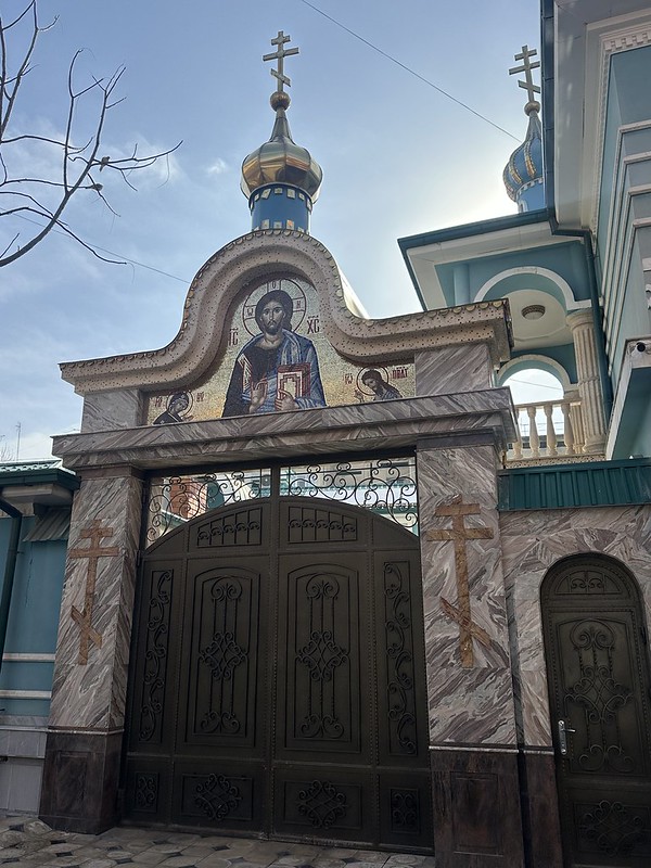 I continue to savor the sights of the city of Tashkent. On my Saturday morning run with Obi near the Russian Orthodox Diocese (territorial jurisdiction) Headquarters in Tashkent. In Orthodox Christianity, a synod, a formal council of clergy (a new word for me), runs the various dioceses. The Patriarch reorganized the Orthodox Churches in 2011 for all of the Central Asian former Soviet Republics to be one diocese. The building used to be the residence of the ruling bishops of the Tashkent Diocese back when there were many more ethnic Russians here. I read it also used to be a hospital and I saw a group of nurses cleaning the pathways around the property while I was running by so there probably is a Russian hospital on the property. Byzantine Orthodox mosaics are beautiful, and the onion domes are distinctive. I am heartened by the Orthodox Christian Church to still be present in the ever-increasing Muslim majority post-independence Uzbekistan. As an American, I value religious freedom and a secular government.