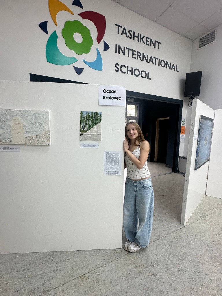 On Monday, March 30, 2026, Ocean participated in the Tashkent International School’s International Baccalaureate Visual Arts Exhibition. This is cool requirement of the IB. Not many people in their lives host an exhibition of their art works. I find it illuminating into the personalities and brains of the students. The arts are personal and human (in this age of AI) and it was delightful to admire the works and talk to the student-artists about the inspiration behind some of the pieces.
