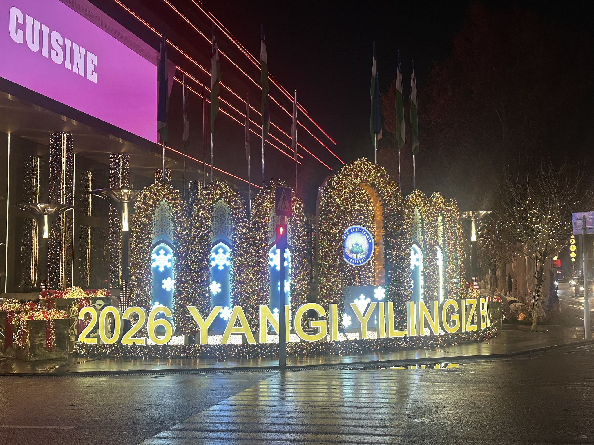 It was a cold but thankfully dry New Year’s Day. I did yoga in the morning and explored the Olympic Park on bicycle in the afternoon. The complex was originally scheduled to host the Asian Games in September, but it was not ready. It is still not open to the public, but most of the sports facilities are completed. There is a new road around the complex and the new airport. As with other areas of Tashkent, the growth and development of residential and business infrastructure make the place unrecognizable. Thanks to the New Year’s Day holiday, there were hardly any cars at all, and I had a fantastic and fast 21-kilometer bike ride. I hope it opens to the public in the spring before I leave.
