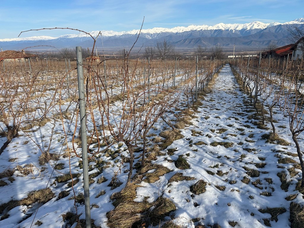 These provide challenges for Georgian winemakers. Making wine in a clay vessel is difficult. It takes hours to clean qvevri because the clay surface is prone to bacterial growth, and too many minerals from the clay seep into the wine. Qvevri are difficult to make and maintain as they are prone to cracking and leakage. Georgian grape varieties are difficult for foreigners to pronounce. A delicious, semi-sweet, red grape variety we discovered at the Ambrosiano Restaurant in Tbilisi is called “Qindzmarauli”. Say that quickly 3 times and try to market that variety to the world. The other challenge is climate change. Less snow cover in the winter (high of 13 C today) and more rain in the spring promote fungal diseases.